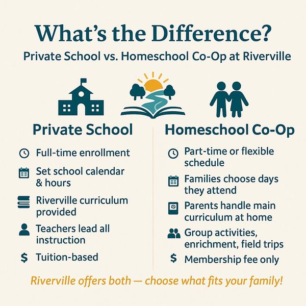 Riverville Academy is a homeschool co-op and private educational program serving children in grades K–3. Our mission is to provide a rigorous, well-rounded academic foundation within a supportive, community-driven environment. Rooted in the principle that “it takes a village,” we partner with families to cultivate student achievement, character development, and a lifelong love of learning.